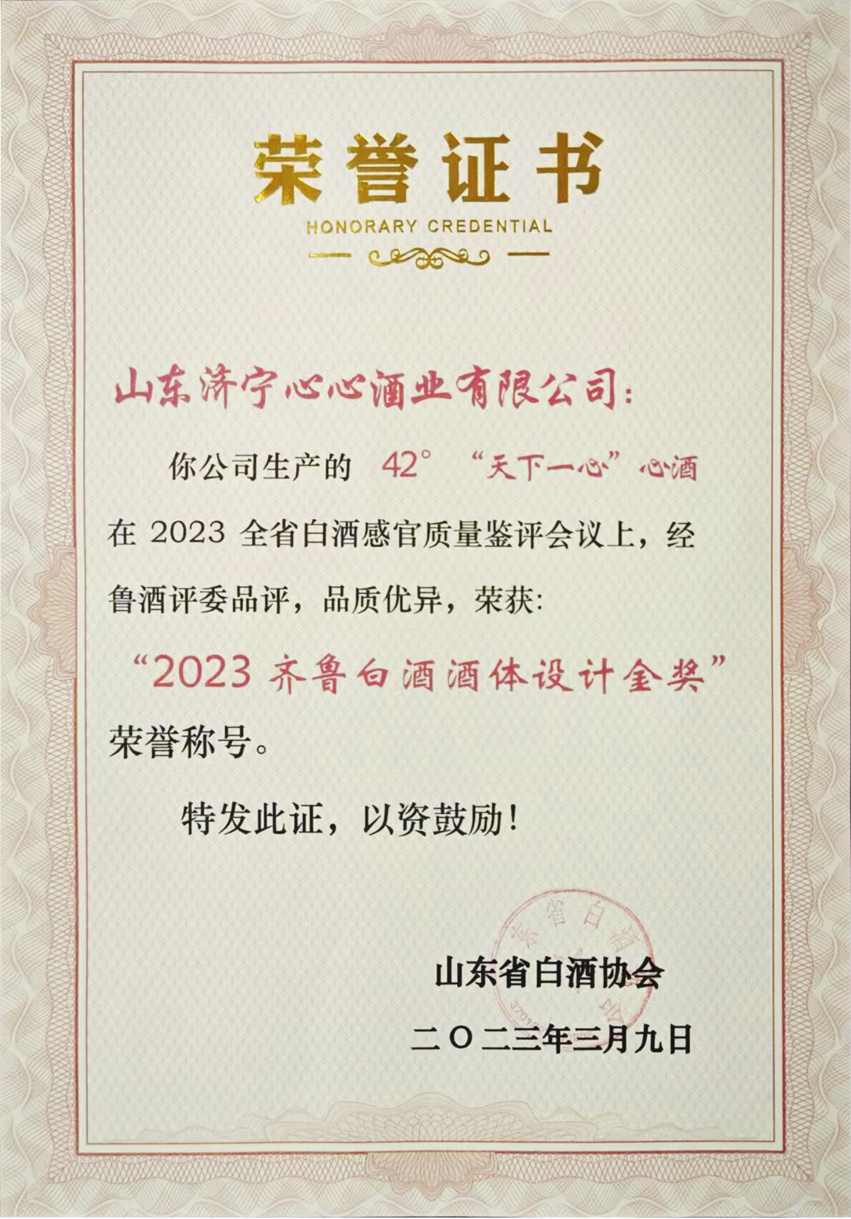 科技創(chuàng)新是企業(yè)發(fā)展的不竭動力。70多年來,心心酒業(yè)隨著共和國的成立而創(chuàng)建,隨著改革開放的深化而發(fā)展,廠容廠貌不斷變化,產(chǎn)品花色年年更新,而心心酒業(yè)堅守傳承傳統(tǒng)技藝的信念和堅持科技創(chuàng)新的信念從未動搖,成為高品質(zhì)生活的引領(lǐng)者和人們美好生活的釀造者的信念從未動搖,特別是近年來公司技術(shù)研發(fā)工作取得長足發(fā)展,企業(yè)技術(shù)中心于2012年被評為市級企業(yè)技術(shù)中心,于2017年被評為省級企業(yè)技術(shù)中心,研發(fā)的心酒系列產(chǎn)品在省、市白酒品評中均獲得優(yōu)級產(chǎn)品稱號,多次榮獲濟(jì)寧市優(yōu)秀成果獎和山東省輕工業(yè)科技進(jìn)步獎。2018年山東省商務(wù)廳認(rèn)定企業(yè)為“山東老字號”,2021年榮獲“白酒大師工作室”以及“山東白酒行業(yè)金牌手工釀造班”稱號。