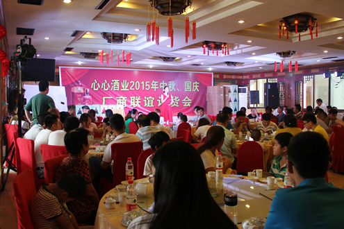 8月25日心心酒業(yè)2015中秋、國慶廠商聯(lián)誼訂貨在太白酒樓圓滿舉行,訂貨會上推出了多項針對經(jīng)銷商的利好政策,并且準(zhǔn)備了精彩的文藝演出、現(xiàn)金禮包和窖藏好酒回饋給經(jīng)銷商。