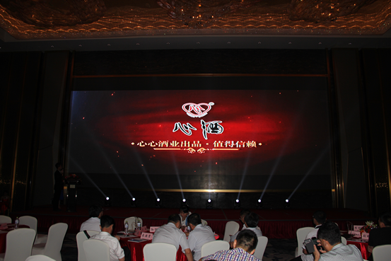 (圖為活動(dòng)現(xiàn)場播放心心酒業(yè)的宣傳片)
