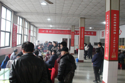 2016年12月31日下午1點(diǎn),山東大學(xué)校友會(huì)和濟(jì)寧市學(xué)人創(chuàng)新協(xié)會(huì)的會(huì)員們,齊聚心心酒業(yè)綜合大廳,舉辦離開(kāi)校園多年后的“心酒杯”2017迎新夠級(jí)比賽,目的就是要讓大家以“牌”為媒,在享受牌技游戲的快樂(lè)中喜迎新年。